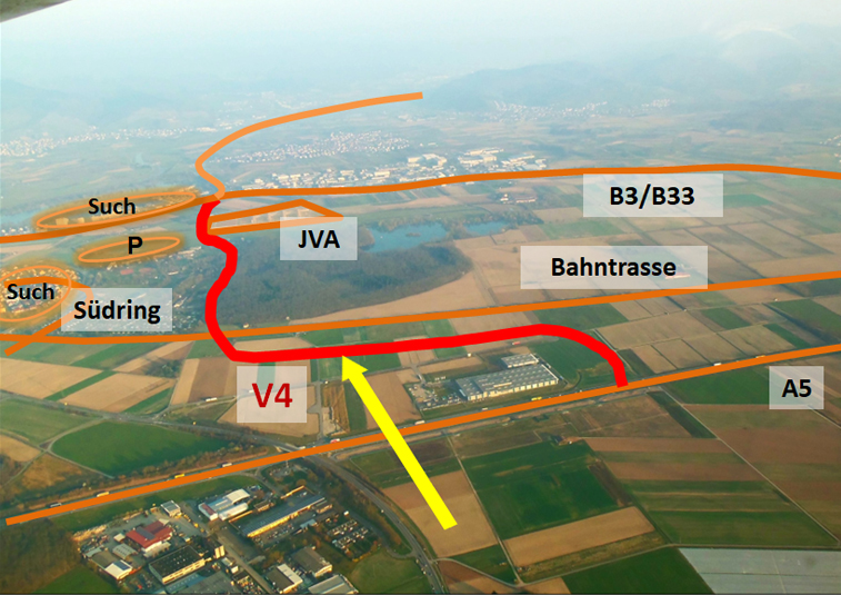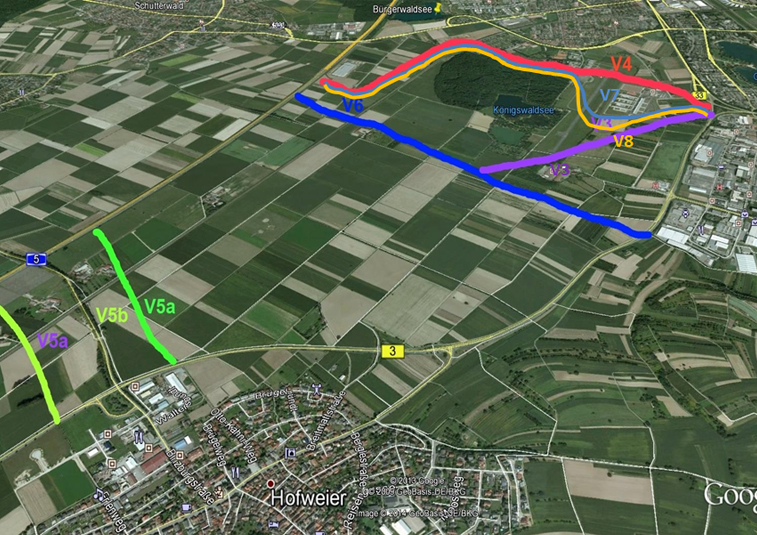 Alle 6 Offenburger Bürgergemeinschaften erklären in einer schriftlichen Resolution ggüb. der Stadtverwaltung und den Gemeinderatsfraktionen (öffentliche Sitzung Haupt- und Bauausschuss am 16.01.2023), die Ablehnung der Varianten V4, V4b und V7 und befürworten eindeutig die „Südvariante“ V3 (südlich Königswaldsee)